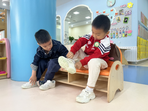 幼儿的游戏来源于生活,用生活中积累的经验进行游戏,是他们的年龄特点决定的。通过一系列的游戏探索,不仅让幼儿体验到和同伴游戏的快乐,也进一步激发了幼儿对穿鞋的兴趣。