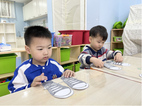 为了进一步巩固小朋友们对鞋子正反的认识,我们结合班级区域活动、户外活动,利用各种孩子感兴趣的材料,开展与鞋子有关的绘画、益智、户外游戏等活动,小朋友们用自己的方式和鞋子做朋友!