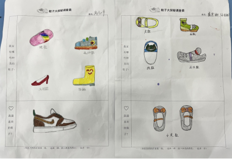 在爸爸妈妈的帮助下,孩子们完成了《鞋子大探秘》的调查问卷。
