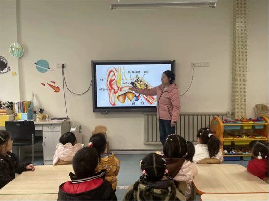 各班老师根据幼儿年龄特点,通过生动形象的图片、故事、游戏等形式让幼儿了解爱耳日的由来、耳朵的作用和主要构造部分的名称,知道如何保护耳朵,养成正确、文明的用耳好习惯。