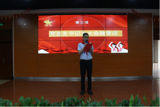 肥光小学党总支书记徐应阔为大会致贺辞:祝愿全体少先队员在我们这个充满关爱的校园中健康成长,争做新时代的好队员,为实现中华民族伟大复兴的中国梦而奋斗。
