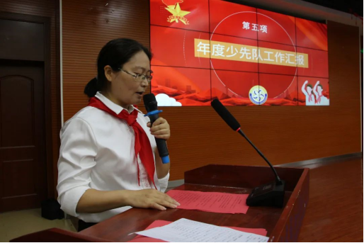 少先队大队辅导员唐云向大会作2023年度少先队工作汇报。