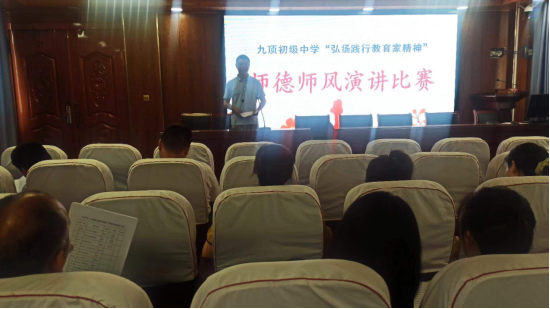 关注为全面加强新时代教师队伍建设,弘扬高尚师德师风,激发广大教师积极践行教育家精神,提升教育教学水平,6月13日下午,灵璧县九顶初级中学在启智楼会议室举行“弘扬践行教育家精神”师德师风演讲比赛。