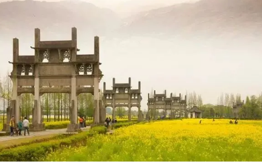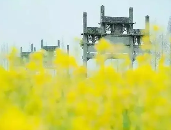 有着“中国牌坊之乡”美誉的棠樾牌坊群,七座牌坊逶迤成群,无论从前还是从后看,都以“忠、孝、节、义”为顺序,每一座牌坊都有一个情感交织的动人故事。春风和煦之时,巍峨的七座牌坊在金黄色的花海中矗立,古朴典雅,蔚为壮观,在大片大片的金黄色油菜花映衬下,自然美景和人文底蕴结合的如此完美,怎不叫人心生惬意!