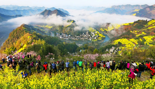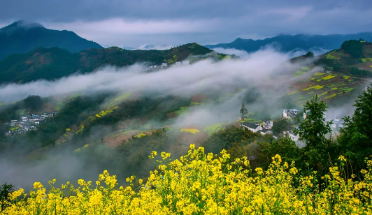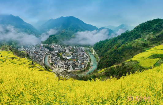 石潭地处歙县霞坑镇,三月石潭将春天渲染成辉煌又壮丽的人间美景花海洋。早晚云雾呈现奇观,金色梯田,白墙黑瓦民居,皆错落有致。有人说,只有去看过石潭的油菜花,才知道春天有多美。