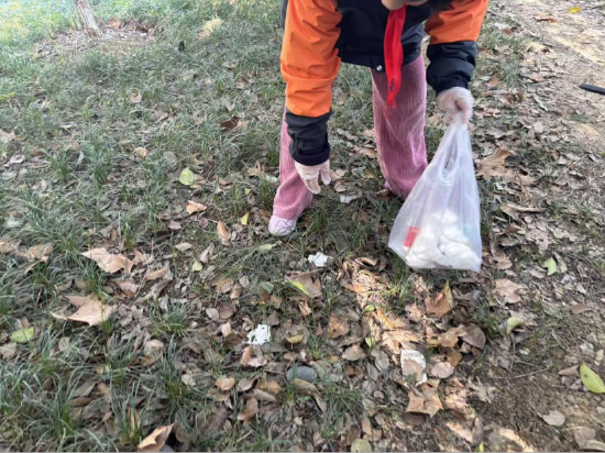 活动现场,小队成员们身着统一服装,戴好一次性手套,迅速进入“环保小卫士”角色。大家沿着匡河周边的绿植带,分工协作、默契配合,弯腰俯身仔细搜寻草丛、步道旁隐藏的纸屑、塑料瓶、烟头及各类废弃物,哪怕是藏在灌木丛深处的细小垃圾,也绝不放过一个卫生死角。