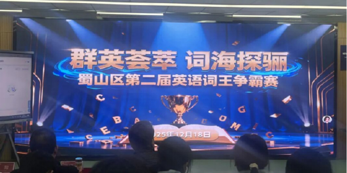 关注2025年12月18日下午,蜀山区第二届“群英荟萃,词海探骊”词王争霸赛顺利举办。心湖校区八年级学子踊跃参与、奋勇争先,凭借扎实的英语词汇功底与出色的临场应变能力斩获多项殊荣,充分展现了我校学子的卓越风采与良好学科素养!