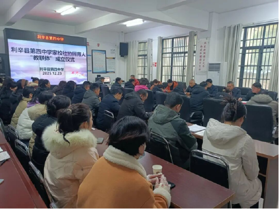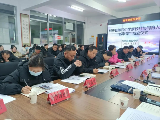 关注12月23日下午3时,利辛县第四中学“家校社协同育人联合体”(简称“教联体”)成立启动仪式在校综合楼会议室举行。县教育局、县委宣传部、科技局、公安局、卫健委、文旅局、团县委、民政局、妇联、关工委、消防救援局、住建局、市场监督局、新华书店、刘竹园社区15家单位代表及30余位家长代表共同出席,现场签订了《协同育人合作协议》,并举行了揭牌仪式。这意味着利辛县推动学校、家庭、社会协同育人有实体依托、有机制保障迈入新阶段。
