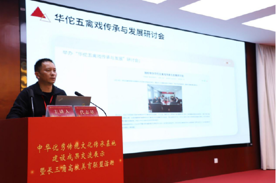 在基地建设情况汇报会上,亳州学院华佗五禽戏传承基地详细汇报了基地建设的整体思路、实践方式和阶段性成果。作为省级传承基地,亳州学院构建了“课程浸润+社团赋能+科研支撑+传播推广”的立体化传承模式,依托“亳文化”育人特色,已通过“学堂在线”慕课平台辐射12000余名学习者,充分体现了“以文化人、以美育人”的教育宗旨。