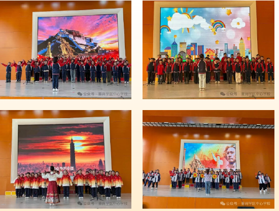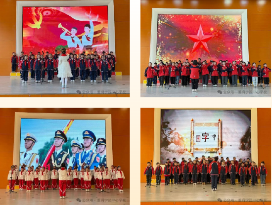 活动尾声,学生代表上台与校领导合影留念,定格下这一充满意义的瞬间。整场比赛秩序井然,从入场、演唱到离场,同学们始终保持良好纪律,展现了董岗中心校学子的优秀素养。