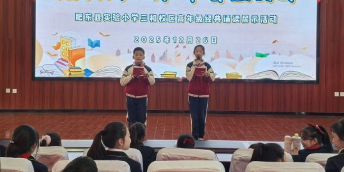 关注为深入弘扬中华优秀传统文化,积极营造浓郁的书香校园氛围,12月26日下午,肥东县实验小学三和校区举办了一场以“经典润心灵,书香溢校园”为主题的高年级经典诵读展示活动。此次活动旨在通过诵读经典,让学生们在文字中感受中华文化的博大精深,激发他们对传统文化的热爱与传承热情。