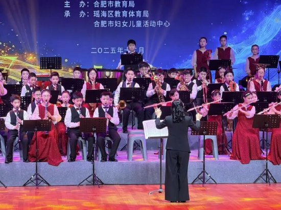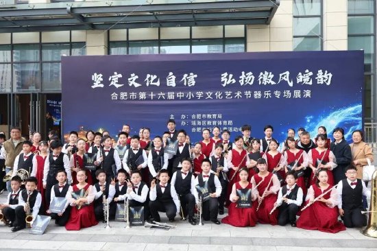 为深耕美育教育实践,厚植青少年文化自信,12月19日,合肥市第十六届中小学文化艺术节器乐专场展演在合肥市妇女儿童活动中心盛大启幕。合肥市六安路小学教育集团“七彩雏鹰”管乐团以一曲《欢庆序曲》活力开场,用跃动的音符点燃全场,为此次“坚定文化自信 弘扬徽风皖韵”的主题盛会注入蓬勃朝气。