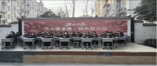 关注岁末将至,喜迎元旦。为丰富校园文化生活,展现学子朝气蓬勃的精神风貌,2025年12月29日下午砀山县果园场学校开展庆元旦课桌舞比赛,师生同台迎新年,校园处处洋溢喜庆氛围。