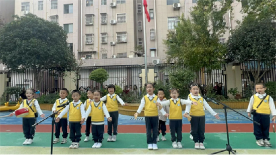 中班年级组以联动形式在幼儿园音体室开展了“我是家乡代言人”活动。孩子们在国旗下表演三句半《夸家乡》,集体欣赏歌曲《夸合肥》,用稚嫩的声音和欢快的节奏,表达对家乡的热爱与赞美。这一活动的教育意义超越了单一班级的活动,实现了1 + 1 > 2的聚合效应。孩子们在展示自己去过的安徽有名景点的过程中,展现了家乡之美,与家乡的人、事、物产生了积极的情感联结。活动让“爱家乡”这个宏大的主题,变成了孩子们可感受、可探究、可表达、可分享的具体经验。