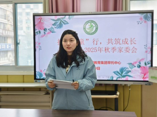 座谈会伊始,副园长陈敏代表早托中心对家委会成员的到来表示热烈欢迎,对家长们长期以来的支持与配合致以诚挚的谢意,并从师德师风建设、公益活动、取得成绩、2026年展望和招生宣传等多个维度,向家长们全面介绍了早托中心的各项工作,展现了中心规范化、精细化的办学理念。保教主任邰红梅聚焦特色课程与游戏活动展开分享,生动讲述了家园共育工作、早教活动和半日托活动中的精彩瞬间;办公室主任曹雁茹详细汇报了保育工作的精细化管理举措与扎实成效;保健老师罗园则针对食品安全把控、传染病预防等重点工作进行亮点汇报。