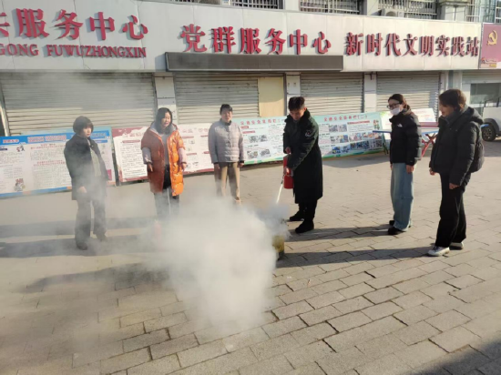 理论知识讲解后,活动进入了实操演练环节。在消防志愿者的指导下,部分居民代表踊跃上前,按照“提、拔、握、压”的操作口诀,亲身体验了如何使用干粉灭火器扑灭模拟初起火灾。消防志愿者还演示了油锅起火、电瓶车自燃等冬季高发险情的处置方法。