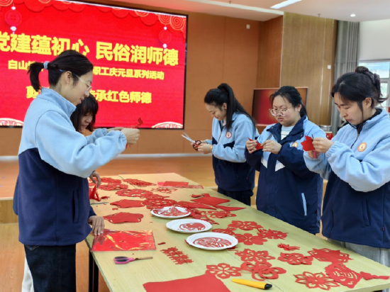 岁末迎新之际,庐江县白山镇中心幼儿园以 “编织中国结、剪纸寄情、书写福字、共做汤圆” 四项活动为抓手,将党建引领与师德师风建设深度融合。活动贴合教职工职业特点,以传统民俗实践为载体,既厚植了红色基因、凝聚了党建合力,又践行了育人承诺、涵养了师者温情。整场活动氛围喜庆祥和,不仅丰富了教职工精神文化生活,更有效凝聚了育人共识,为新一年工作注入奋进力量。(吴艾平 许玉霞 陈姣 姚小伟)