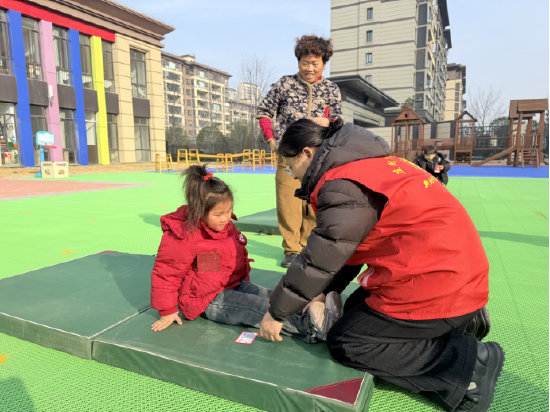 亲子游戏是活动的重头戏,6个独立游戏区各具趣味。“铁环滚滚”中,家长带着孩子并肩协作,稳步推动铁环前行;“齐心协力”“稳步前行”等项目里,亲子携手完成挑战,在奔跑与互动中拉近心与心的距离。孩子们手持“新年闯关券”,每完成一项挑战就能收获一枚印章,满满的成就感写在稚嫩的笑脸上。