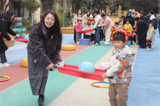 庐实幼各园开展了别开生面的户外亲子游戏。操场与班级变身为趣味盎然的游戏场地,亲子游戏“两人三足”、“亲子携手集福运”、“马年哒哒哒”袋鼠跳、“球球亲子运动会”等趣味项目的开展,巧妙融入了新春的吉祥寓意,孩子们在奔跑跳跃中锻炼体能,家长们也重拾童年乐趣,与孩子并肩协作、默契配合,每一张笑脸上都充满了阳光与幸福。