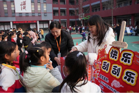 “今朝嬉戏今朝醉,不负韶华不负冬。” 游园闯关区更是一派热闹景象。融合音乐韵律的节奏挑战、尽显美术创意的手工拼图、舒缓心理压力的趣味盲盒、考验身体协调性的障碍穿越……一个个精心设计的关卡,让孩子们在打卡闯关中收获纯粹快乐,在互动体验中启迪灵动心智。每闯过一关,即可收获一枚成功奖章,凭借奖章兑换的“限时同桌券”“表扬券”“免罚券”等特色奖励,更是让孩子们手舞足蹈,欢乐的气息久久回荡在校园上空。