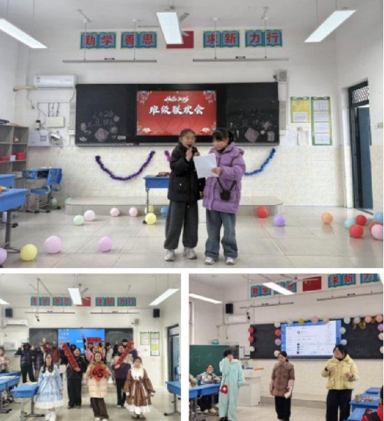 各班元旦主题班会形式多样,“新年祝福盲盒”“成语接龙”等趣味活动接连开展,让同学们感受元旦氛围,教室中处处洋溢着欢声笑语。