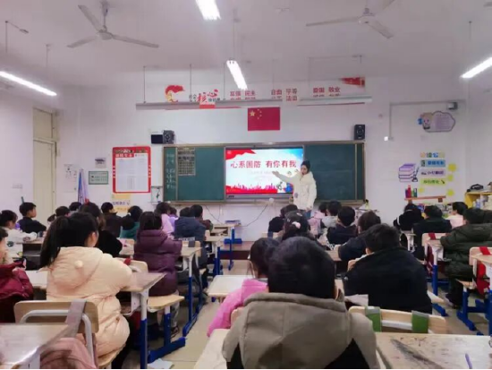关注亳州市第四小学教师在通过开展“心系国防 有你有我”主题班会,营造庄重的教育氛围。通过提问“同学们知道为什么能安心坐在教室学习吗?”引发思考,结合班级学情简要介绍班会目的:了解国防知识、增强国防意识。