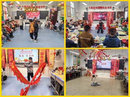 走进各班教室,处处洋溢着节日的喜庆。低年级的孩子们身着节日盛装,用稚嫩的歌声演唱《新年好》《小苹果》等歌曲,还通过手势舞、童话剧表演传递对新年的期待;中高年级的班级则创意十足,有的组织“新年心愿树”活动,同学们将写满祝福的卡片挂上树枝;有的班级开展“趣味知识竞答”,将传统文化与学科知识巧妙结合;更有班级策划了“美食分享会”,孩子们亲手制作饼干、水果拼盘,互赠美味与快乐。