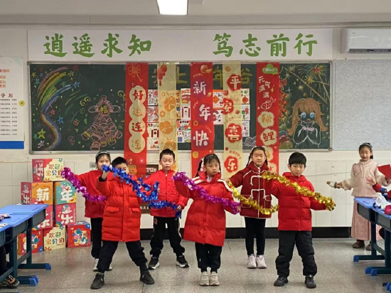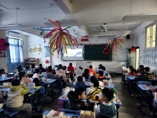 活动前夕,各班师生与家长们齐心协力布置教室。五彩的气球、鲜艳的彩带、精致的贴纸与新年主题板报,将教室装点成充满童趣的欢乐海洋。在浓浓的期待中,元旦联欢正式拉开帷幕。