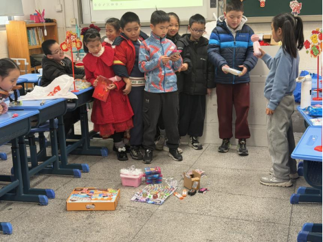 还有班级设置了趣味游戏环节。“套圈”“你画我猜”“知识问答”等互动游戏让同学们积极参与、乐在其中,大家在游戏中增进了友谊,也收获了满满的快乐与小奖品。有的班级还结合年度积分制度,进行了表彰与奖品兑换,激励同学们继续努力、共同进步。