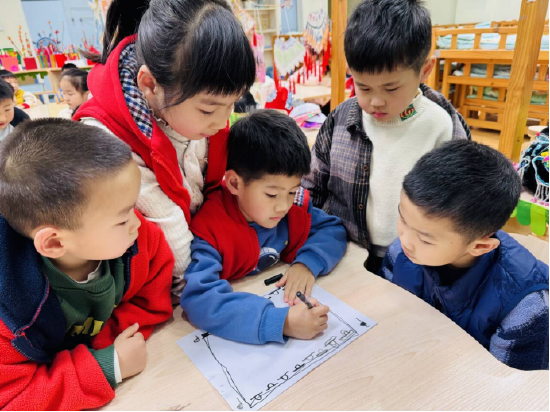 游戏结束后,宝贝们回到班级,兴致勃勃地记录下自己的游戏故事。