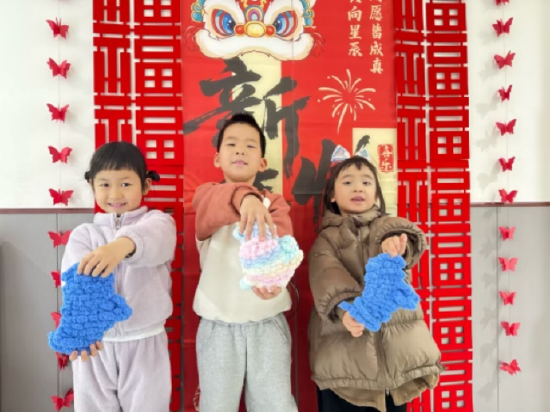 活动尾声,孩子们高高举起自己编织的手套,满脸骄傲。大家纷纷行动起来,有的将手套套在手上向同伴展示,让五彩的毛线手套成为冬日里最亮眼的装饰;有的捧着作品跑到老师面前,亲手递上自己的心意,分享编织的喜悦与暖暖的爱意:“老师,这是我织的手套,送给你,冬天戴着手套就不冷啦!”稚嫩的话语里,满是童真与温情。