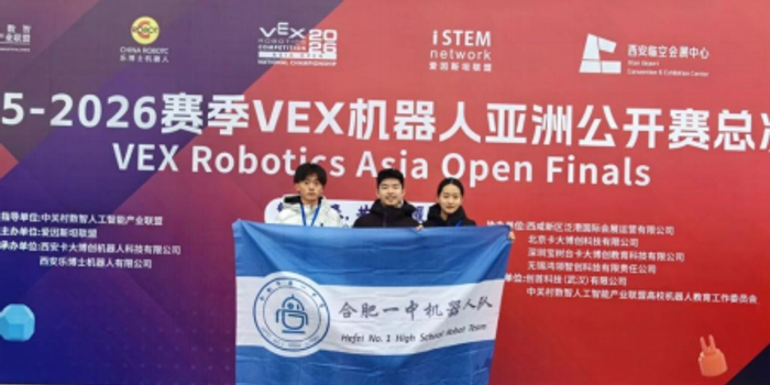 关注2026年新年之际,2025-2026赛季VEX机器人亚洲公开赛总决赛于西安临空会展中心盛大启幕。作为本赛季的重要赛事之一,本次比赛吸引了来自全国各地近700支精英赛队、2500余名科创少年齐聚古都西安。怀揣科技梦想的他们,在此展开了一场场巅峰对决。紧凑的赛程与激烈的对抗,对参赛队伍的技术水平、临场应变能力及团队协作能力均提出了较高要求。合肥一中机器人队最终斩获联赛总季军、分区亚军,并在技能赛项目中夺得季军,成绩全面亮眼,同时成功获得通往世锦赛的参赛资格。