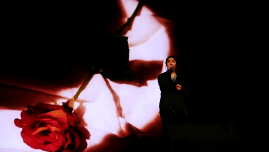 中美高二(3)班张良悦以《红蔷薇白玫瑰》惊艳开嗓,台风沉稳大气,高低音转换自如流畅,尽显扎实演唱功底。