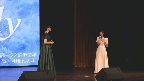 高二(15)班程昕泽雨与中美高二(1)班朱优璇合唱《永不失联的爱》,两人默契十足,歌声里的情感层层递进,将那份真挚坚定的友谊诠释得淋漓尽致,引得台下掌声阵阵。