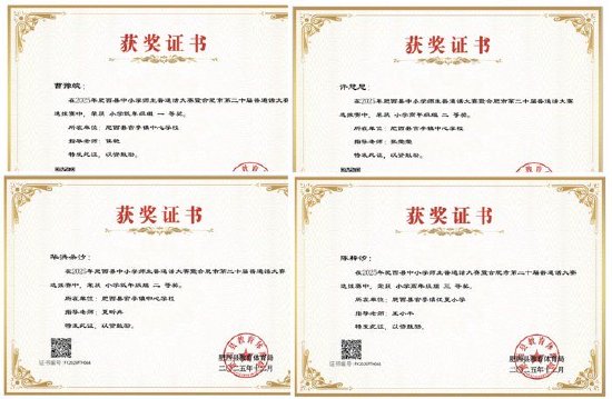 近日,肥西县官亭镇中心学校在肥西县普通话和经典诵读两项比赛中双双出彩,斩获多项荣誉,尽显师生扎实的文化素养与卓越的综合能力。