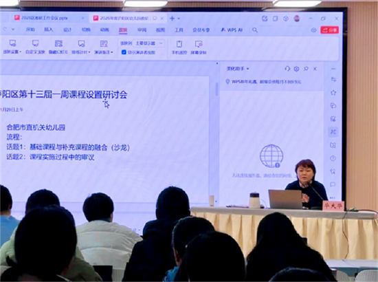 岁启新章,教研先行。此次会议为庐阳区新学期幼儿园教研工作凝聚了共识、明确了路径,助力教师厘清了课程优化的方向,更推动“优善慈爱”的品牌理念在课程实践中落地生根,为庐阳区学前教育高质量发展注入了新动能。新学期,全区各幼儿园将紧跟会议部署,扎实推进各项教研任务,以精准高效的教研实践赋能保教质量提升,用专业担当助推庐阳区学前教育高质量发展再上新台阶。(侯思琪)