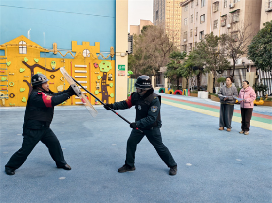 安保人员的考核则聚焦实战能力,消火栓使用环节计时比拼,从快速定位、规范操作到精准出水一气呵成;防暴演练中,安保人员反应迅速、处置果断,熟练运用防暴器械抵御“入侵者”,有效展现了应对突发安全事件的应急处置能力。