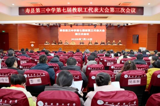 关注为切实保障教职工参与学校民主管理的权利,充分发挥教代会民主监督职能,团结带领全体教职员工共谋学校新时期改革与发展大计,积极推进民主、和谐校园建设,2026年1月10日上午8:30,寿县第三中学第七届教职工代表大会第三次会议在校学术报告厅胜利召开。出席会议的有正式代表、列席代表共140余人。