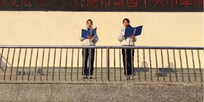706班洪辰希、张雨洁同学带来诗歌朗诵《遵义的光,照亮少年的胸膛》。她们的朗诵铿锵有力、情感真挚,从历史的转折讲到精神的传承,从先辈的奋斗说到少年的担当,将遵义会议的光辉与新时代少年的使命紧密相连,赢得全场师生阵阵掌声。
