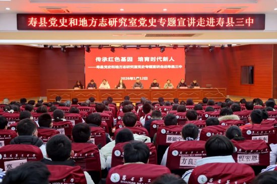 关注为引导党员教师与团员学生深入了解地方发展历史,从党史中汲取精神养分、提升思想觉悟,1月12日下午,寿县三中特邀寿县党史和地方志研究室专家走进校园,在学术报告厅开展“传承红色基因 培育时代新人”专题宣讲活动。活动由副校长姚传柱主持,寿县档案馆(县委党史和地方志研究室)相关领导、校党总支班子成员、全体党员教师及团员、少先队员代表共同参与。