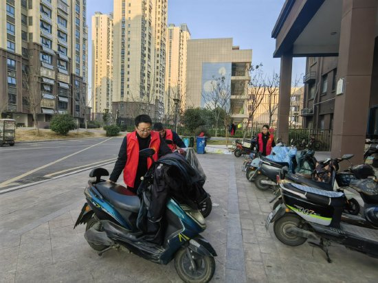 活动现场,该校团员学生代表、党总支党员佩戴党徽,身着志愿者红马甲,精神饱满地来到三十埠社区委荣城花苑小区。团员学生主动向小区内居民讲解城市精细化管理的工作要求,将自制的宣传册页分发到社区居民手中。党员志愿者拿起工具,对小区的环境卫生进行了集中清理,同时,针对非机动车停放现象,志愿者们逐栋整理,让车辆摆放整齐有序,形成一道亮丽的安全风景线。