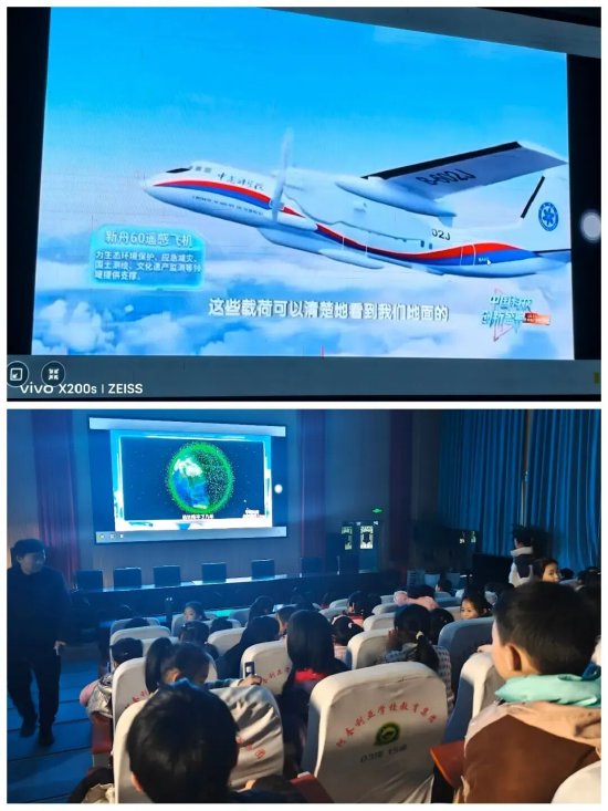 学校组织部分师生齐聚报告厅,集中观看“总台科晚”。当大屏幕上呈现出炫酷的前沿科技成果时,报告厅内不时响起阵阵惊叹与掌声。孩子们瞪大好奇的眼睛,生怕错过任何一个精彩瞬间。
