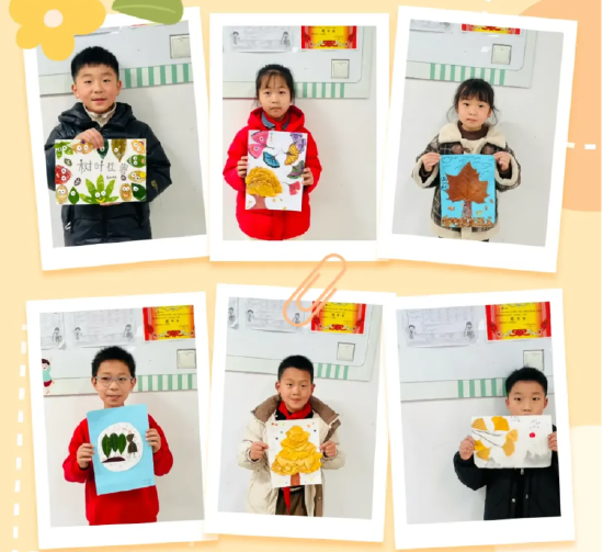劳动结束后,队员们并未止步于清洁本身。他们将部分形态完整、色彩斑斓的落叶带回班级,展开创意构思,用灵巧的小手拼贴出一幅幅生动有趣的“树叶画”——有展翅的蝴蝶,有可爱的小女孩,还有江南风光。这些作品不仅装饰了教室墙面,更成为班级环保教育的生动载体。