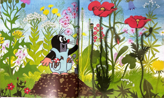 鼹鼠带着这捆亚麻来到池塘边。它知道,要想把亚麻变成丝线,得先在水里泡一泡。这时,热心的青蛙找来一块大石头,稳稳地压住亚麻。等亚麻被水泡得软软的,鼹鼠又把它们拿上岸,放在温暖的太阳下晒干。躺在柔软的草地上,鼹鼠和亚麻一起晒着太阳,暖烘烘的,惬意极了。