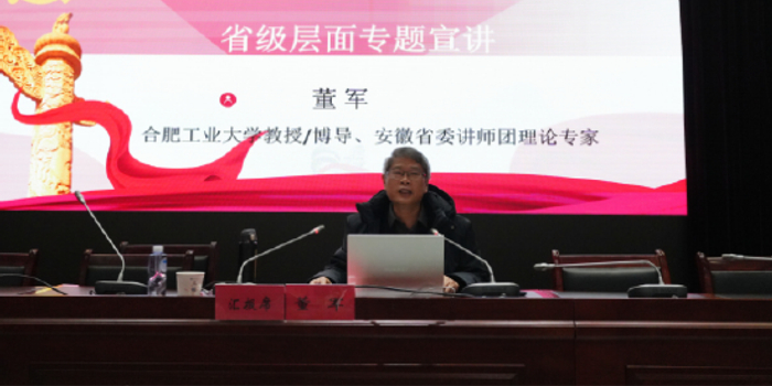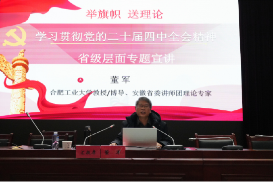 关注1月9日下午,学校在图书馆学术报告厅开展“举旗帜 送理论”学习贯彻党的二十届四中全会精神省级层面专题宣讲会。省委讲师团理论宣讲专家库成员、合肥工业大学马克思主义学院教授董军受邀作专题辅导报告,学校党委委员、副校长蔡文芬主持会议。