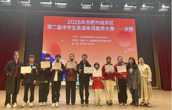 冬日暖阳沐校园,词海竞技绽芳华。1月15日,由合肥市经开区举办的第二届中学生英语单词素养大赛决赛圆满落幕。合肥市四十五中芙蓉分校南校区七年级、八年级学子组成的参赛队伍,凭借扎实的词汇功底、敏捷的反应能力与默契的团队协作,在激烈角逐中脱颖而出,斩获多项荣誉,为学校再添光彩!