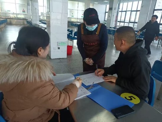 上午7时左右,家委会成员与食堂专班人员准时抵达食堂北楼梯口验菜区,对当日食材进行仔细查验,核对其新鲜度、品质及相关证明,严把食品安全第一关。