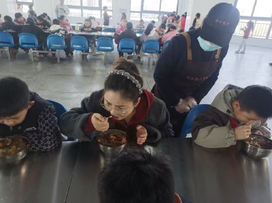 午餐时段,家委会成员走进学生中间开展陪餐,亲身体验饭菜口感与温度,并与学生亲切交流,听取孩子们的用餐感受。