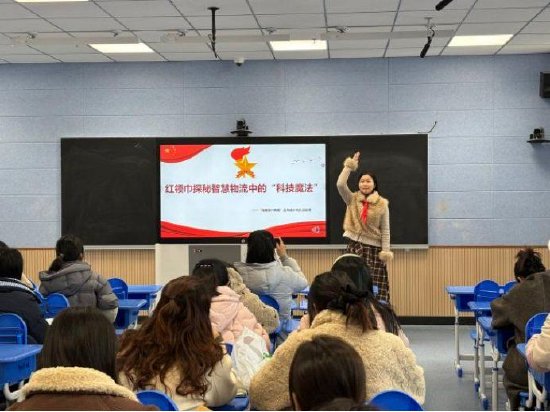 最后,由合肥市六安路小学翠微分校的辅导员张世梅老师带来主题为《红领巾探秘智慧物流中的“科技魔法”》的活动说课。张老师从活动背景、设计理念、目标设定、生活案例、预期成果及反思等方面,系统阐述了一节富有探究性和实践性的少先队活动课是如何构思与设计的。