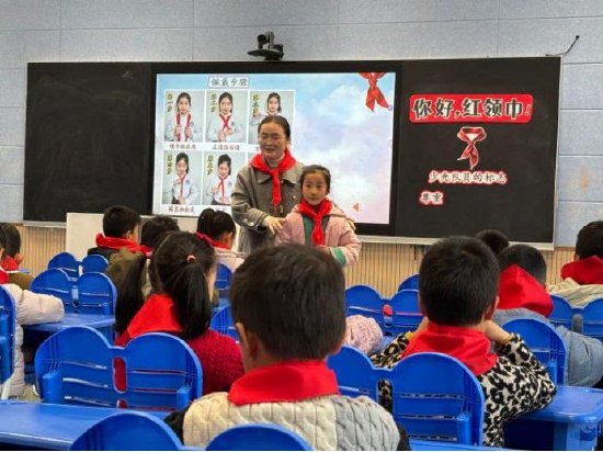 活动在合肥市翡翠学校辅导员张忍老师的队课《你好!队旗与红领巾!》中拉开序幕。课堂上,张老师通过历史故事、情景模拟、互动问答等多种形式,引领队员们深刻理解了队旗和红领巾的象征意义与光荣历史,并且详细讲解了如何佩戴红领巾。队员们神情专注,积极参与,在庄严的仪式感和亲切的互动中,筑牢了理想信念的根基。这节规范的队课示范,为在场辅导员如何上好少先队活动课提供了鲜活范本。